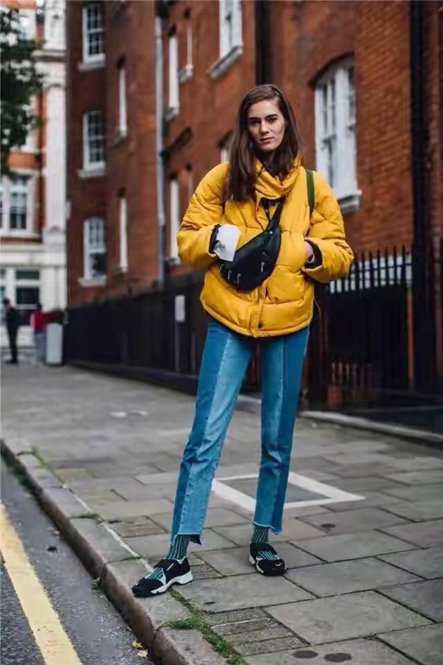 上松下紧穿搭并不是说上身过于宽松,下身过于紧绷,而是恰到好处的松紧调节,懂得利用时尚单品进行修饰才能诠释优雅高贵的气息。直筒的短款棉服不仅减龄感十足,还有温暖舒适的感觉,想要个性吸睛的效果就可以在烟囱路上花点心思,例如拼接设计、上下分剪裁以及渐变牛仔蓝的呈现都是为上松下紧的穿搭法则打基础!