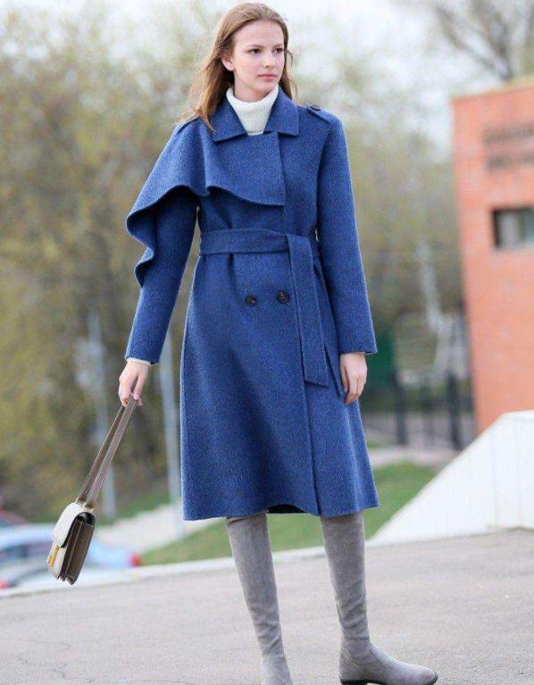 大衣大概是秋冬季节出镜率最高的单品,大衣长及膝盖的长度不仅能有效的拉长身高,还有效的修饰身材线条,尤其适合胯宽、腿粗的梨形身材,大衣宽松的版型搭配长靴也能打造出上宽下窄,上松下紧的视觉感。