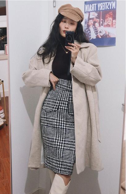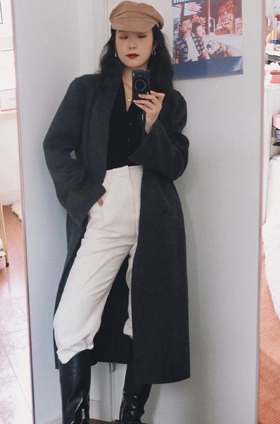 结合着露肤留白的穿法,在气质大衣的修饰遮盖下,会让我们整体身形呈现出不错的状态,显高显瘦效果绝对不会让你们失望。