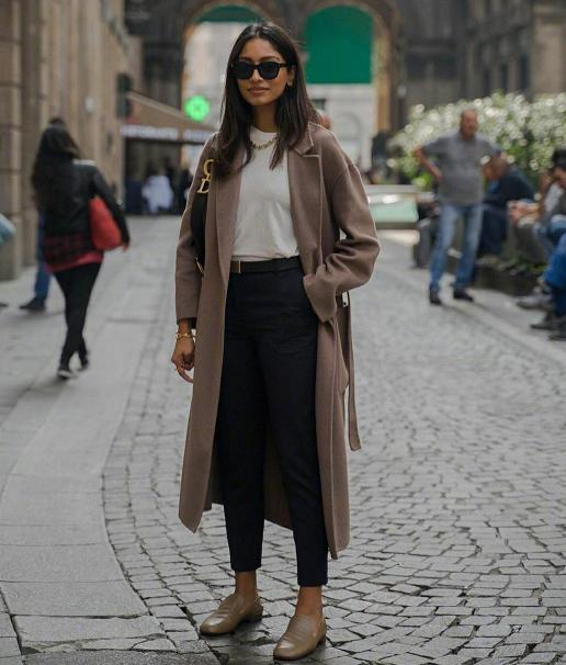 当然如果你追求的是那种较为干练气质的效果,这种纯色设计的乐福鞋就很不错,在极简的设计中就能够彰显不错的干练效果,尤其是在和大衣的色彩保持一致的时候,让整体的那种独立气息变得更加浓郁,更有助于塑造新时代女强人的形象,更适合那些有着上班通勤需求的女性选择。