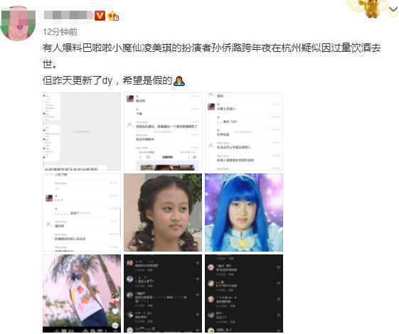 此前有网友就爆料《巴啦啦小魔仙》中饰演凌美琪的孙侨潞去世,因为在跨年夜饮酒过度,孙侨潞在跨年夜与朋友一起喝酒,但是其中一个朋友是喝酒不要命的,最终酿成了惨剧,网友们纷纷跑到孙侨潞的社交账号下去询问,非常关心这件事。