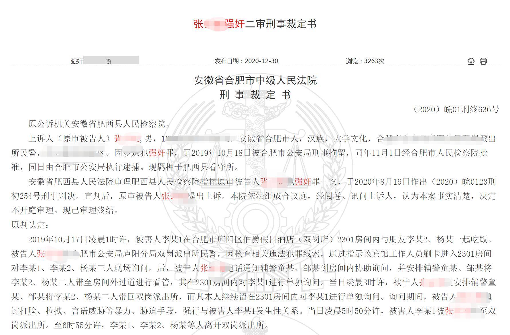 安徽省合肥市中级人民法院认定张某龙强奸罪成立