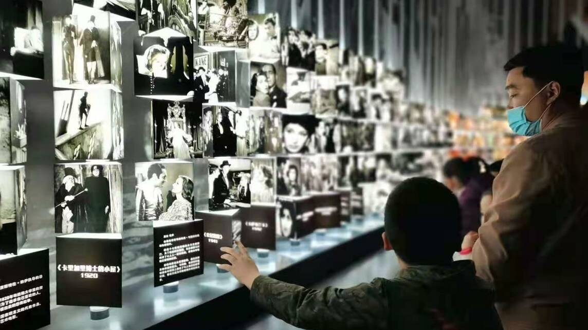 2月13日,大年初二,青岛电影博物馆春节假期对外开放首日就迎来了大量的游客。这面电影展示墙介绍了电影从无声到有声,从黑白到彩色的发展历程,吸引了大家的驻足观赏。“1910年爱迪生发明了有声的电影……”老家位于潍坊的张华今年积极影响政府号召留在新区过年,今天特意带着孩子一起来参观电影博物馆,他一边参观,一边给孩子讲解。“今天过节不回老家,带着孩子过来了解一下,看一下,增加一下孩子的知识量。”张华告诉记者。