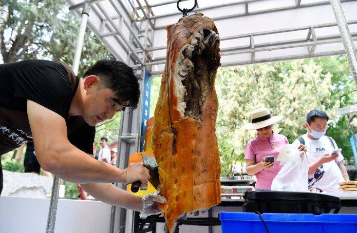 >>>6月13日,2021年文化和自然遗产日暨山东非遗购物节“寻味齐鲁—百城千味”非遗特色美食端午节进景区展示活动在济南千佛山风景区举行。德州扒鸡、周村烧饼、郓城西瓜酱、章丘烤肉、胶东大饽饽等山东特色美食一应俱全,吸引了不少游客前去品尝。