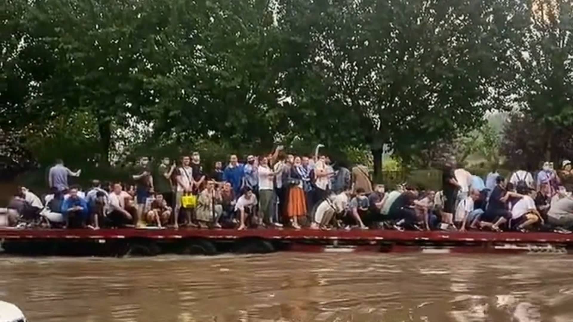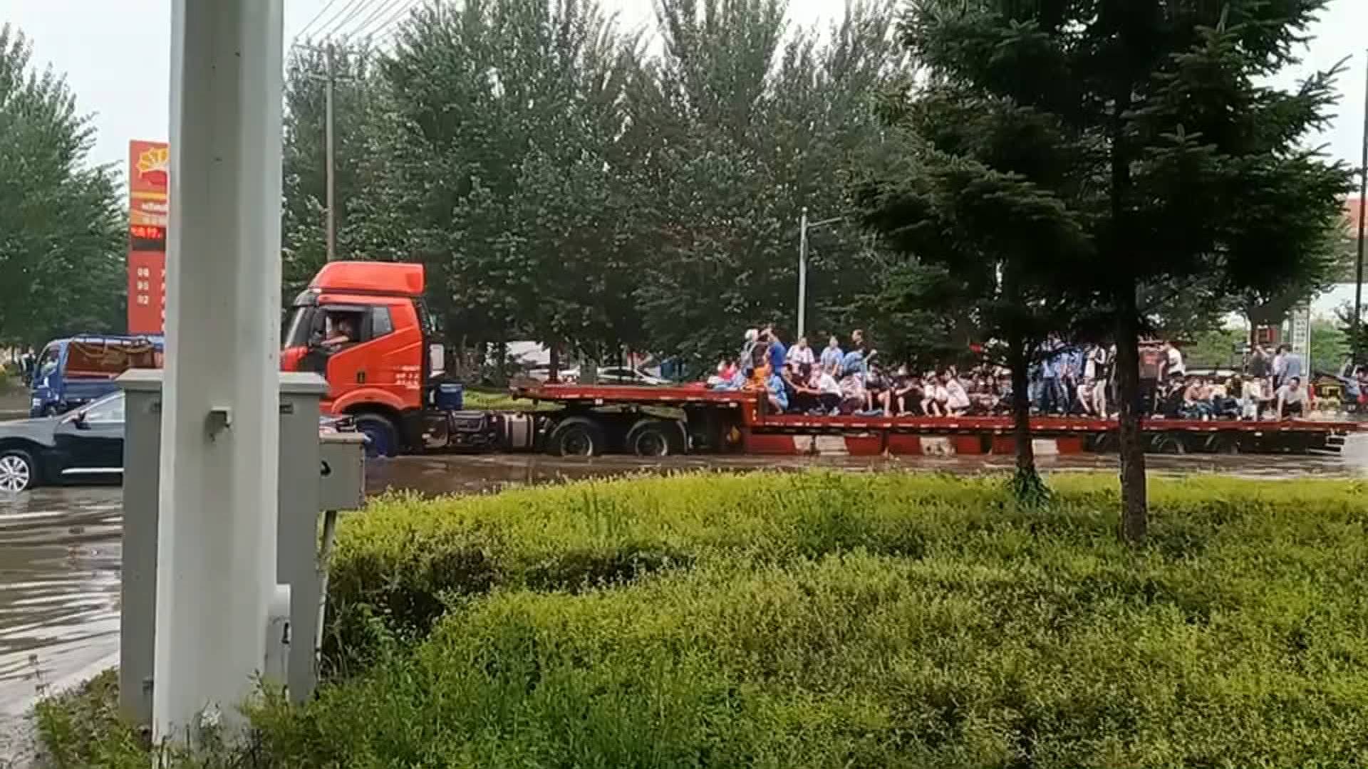 齐鲁网·闪电新闻8月17日讯 8月16日,辽宁沈阳遭遇强降雨,在张士开发区一处积水路段,数十人乘一辆平板货车进行转移。 “感觉就像坐船似的”,目击者王先生表示,坐车转移的人均为一家企业员工,因附近积水严重才选择使用平板货车转移。 后续消防人员抵达现场,将被困人员全部安全转移。
