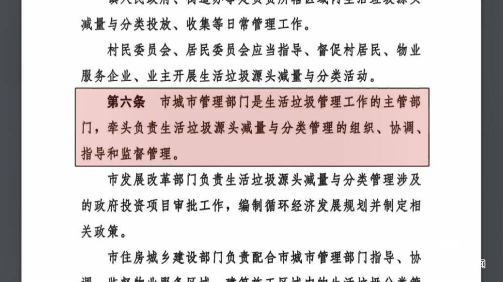 《济南市生活垃圾减量与分类管理条例》规定,济南市城市管理部门是生活垃圾管理工作的主管部门,牵头负责生活垃圾源头减量与分类管理的组织、协调、指导和监督管理。随后,记者将上述情况反映给了济南市城市管理局。