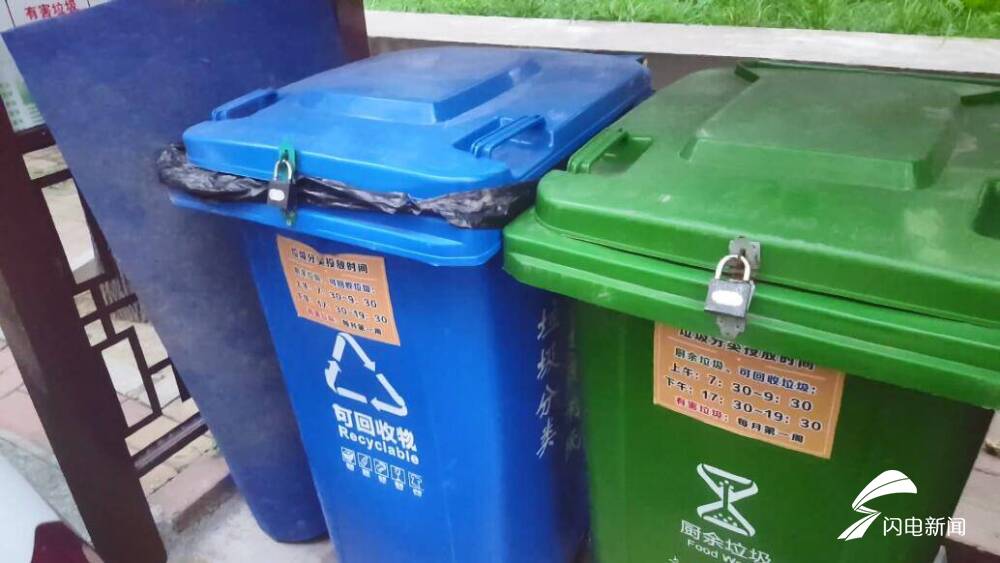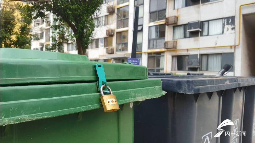 周围的居民告诉记者,可回收垃圾和厨余垃圾的垃圾桶都还没使用,如果真正实施分类,居民们就按规定对垃圾进行分类,但垃圾箱锁着,居民们无法操作。