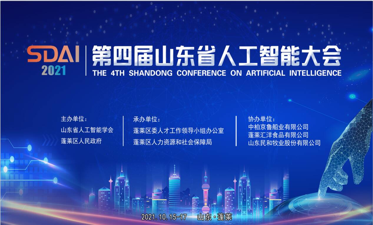 第四届山东省人工智能大会(SDAI 2021)由山东人工智能学会、蓬莱区人民政府主办,由蓬莱区委人才工作领导小组办公室、烟台市蓬莱区人力资源和社会保障局承办,蓬莱中柏京鲁船业有限公司、蓬莱汇洋食品有限公司、山东民和牧业股份有限公司协办。