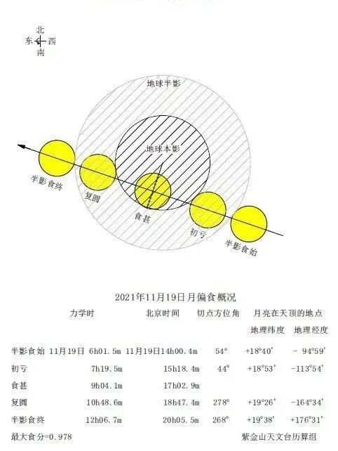 此次可见月食全程的区域在我国东侧,只有北美洲和俄罗斯东北部可以看到全程。