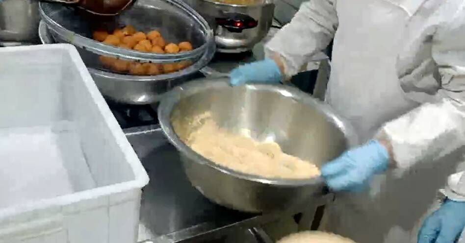高密市青艺食品有限公司车间主任 邓金凤说:“现在做的是高密特产大蜜枣馅料的制作工艺,首先我们的面粉要用熟粉,果仁有七八种、八九种,熟的黑芝麻、熟白芝麻、南瓜籽、核桃仁,还有花生粒、葵花籽、松子等等,纯制花生油、香油,大蜜枣馅不能起筋,搅拌均匀就行。”