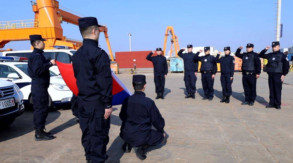随后,边检民警与凤城海岸派出所民警在海阳港码头共同宣誓。