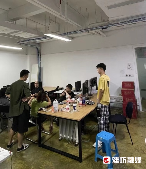 徐海粟(右一)正在与同事进行《舞千年》节目策划(资料图)