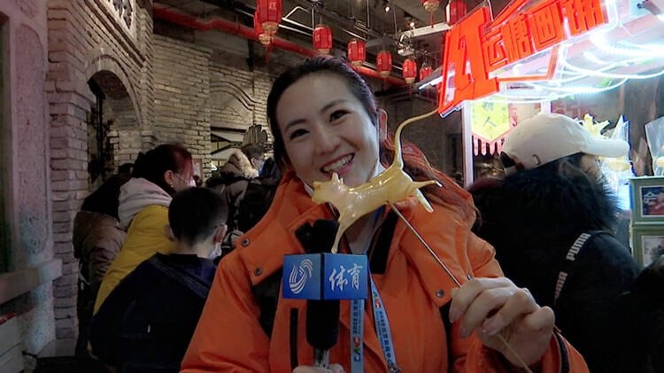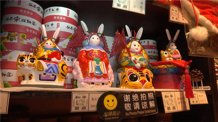 除了琳琅满目的工艺品,书法篆刻、吹糖人儿、皮影等传统艺术也让人目不暇接、叹为观止。记者体验了一把吹糖人儿的乐趣,吹出了一只可爱的小老虎,祝大家虎虎生威,虎年大吉。