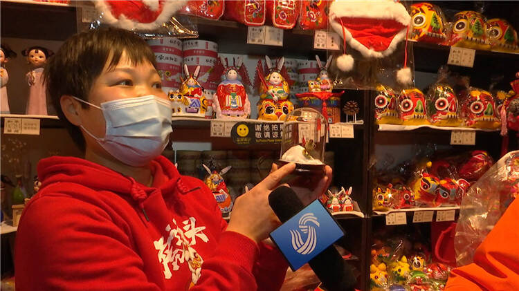 在和平菓局的“真趣屋”,虎头鞋、兔儿爷、瓷人...生动可爱的小摆件一一呈现在大家面前。为了迎接冬奥会,虎头鞋制作技艺传承人赵素还给记者展示了一件特殊的艺术品。