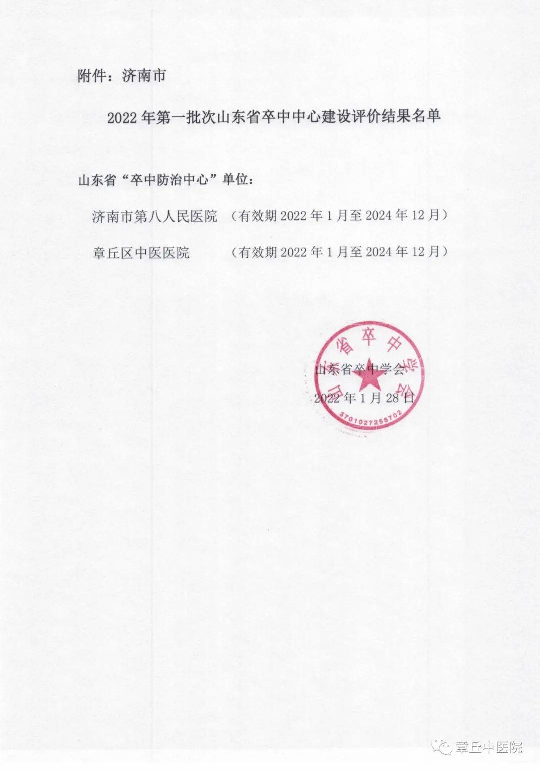 齐鲁网·闪电新闻2月10日讯 近日,济南市章丘区中医院卒中中心顺利通过山东省卒中学会评价认证,正式成为山东省“卒中防治中心”单位,目前为止是章丘区唯一一家。