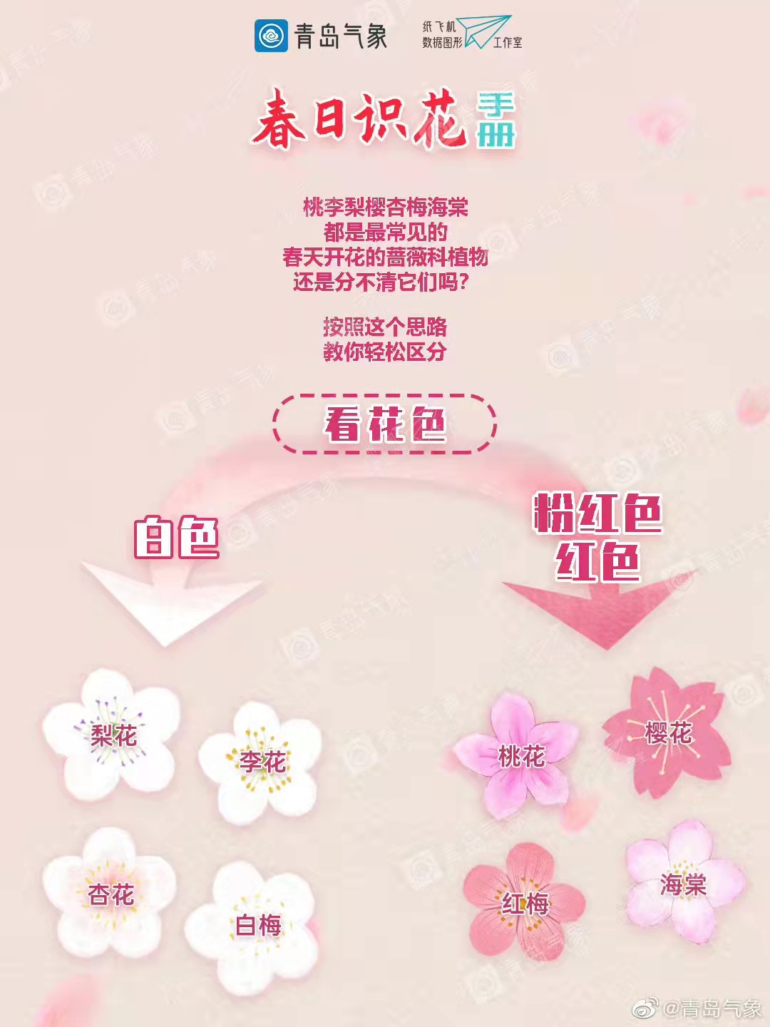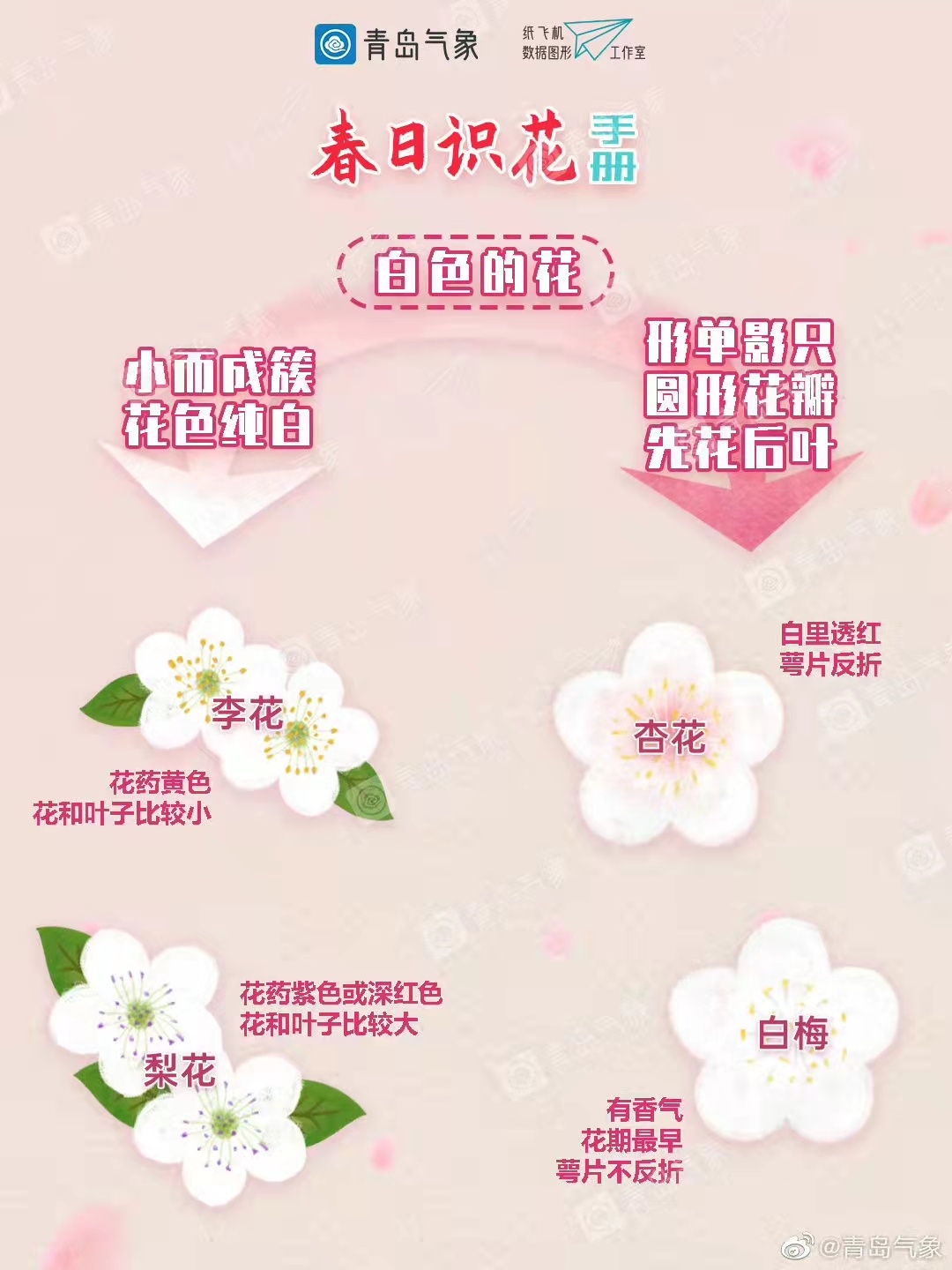 如果你正打算去赏花,就请收下青岛气象纸飞机数据图形工作室制作的这份春日识花手册吧!