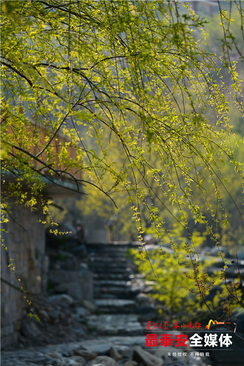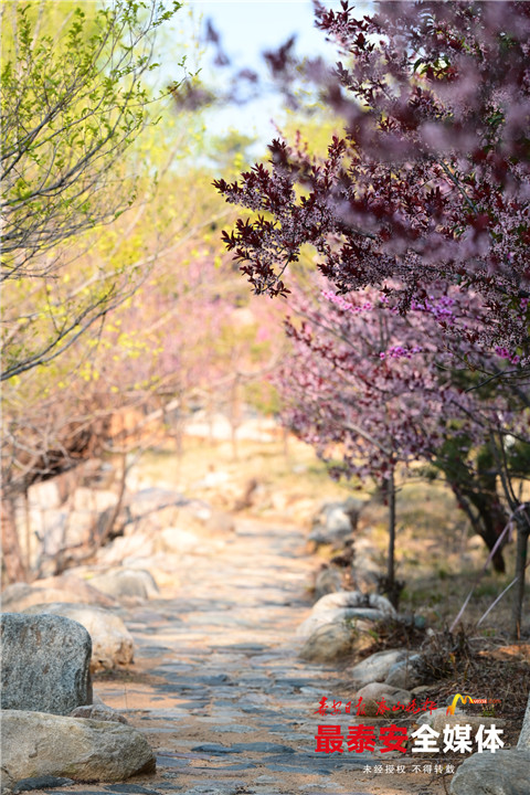 漫山遍野的花儿次第开放,红的似霞,白的似雪,黄的如月,连成一片,落英缤纷,美不胜收。此时的彩石溪景区山峦叠翠、流水叮咚,盛开的花儿点缀着绿水青山,花瓣飘落水面,渐渐汇集成花海。潺潺流水奏响春的乐章,艳艳桃花织就春的华服,此时的泰山彩石溪,山青水碧,溢彩流韵。