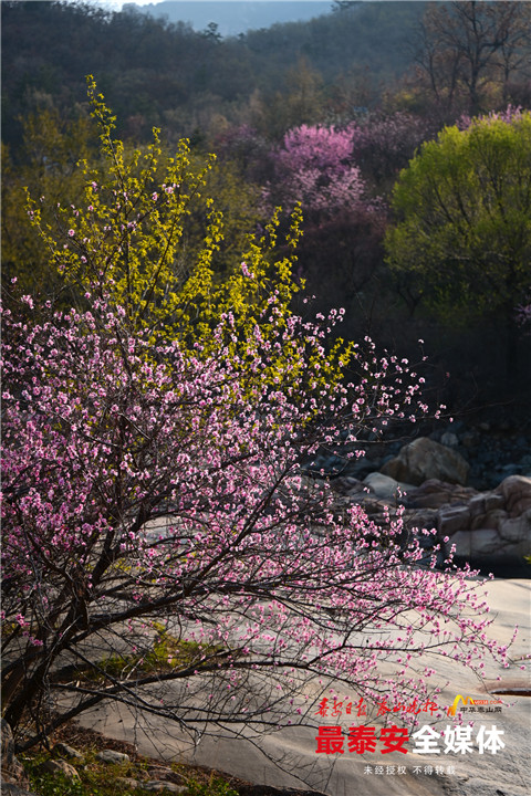 桃之夭夭,灼灼其华。春暖花开时节,泰山西麓彩石溪再现“十里桃花”美景,绵延数公里的桃花次第开放,堪比电视剧里的十里桃林。恰逢清明时节,在家也可“云赏花”,特殊时期,“云游泰山”也可赏无边春色。