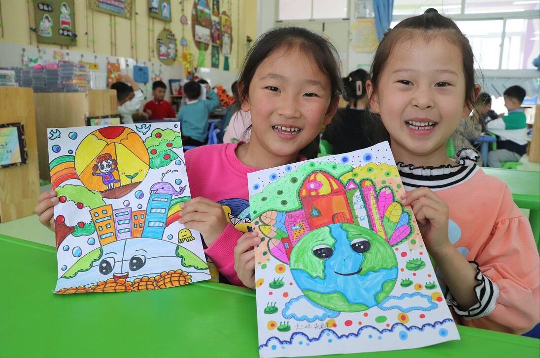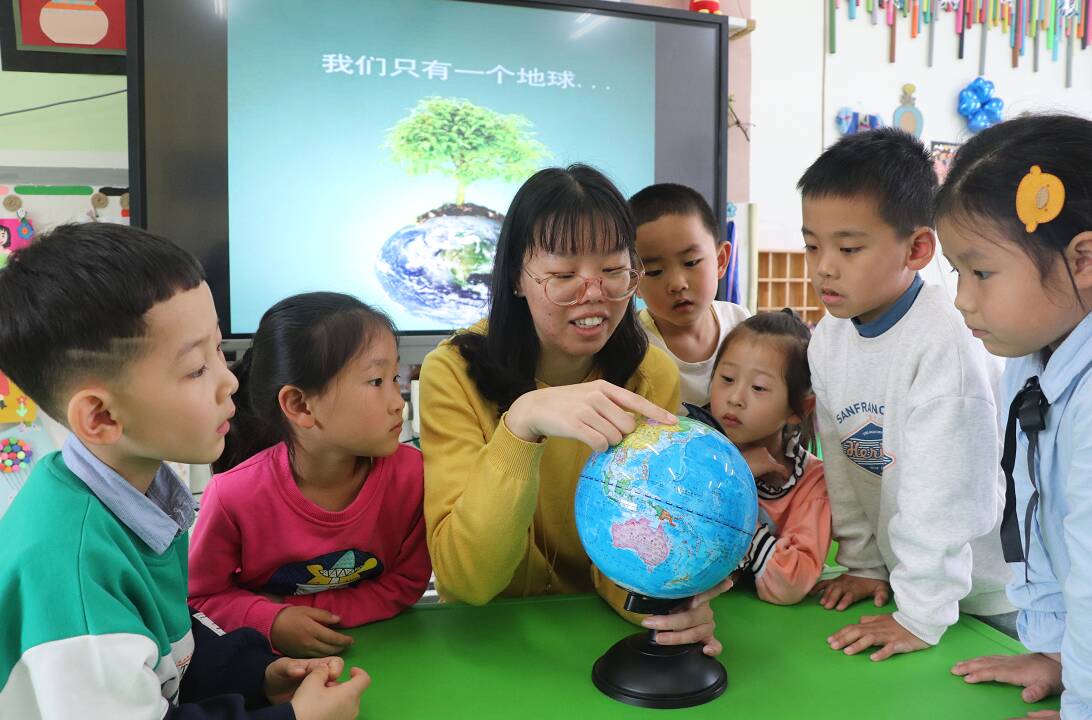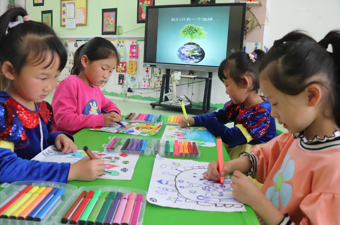 齐鲁网·闪电新闻4月21日讯 在“世界地球日”来临之际,山东省高密市金苹果幼儿园开展以“珍爱地球 人与自然和谐共生”为主题的教育活动,老师通过幻灯片、主题绘画等方式,引导学孩子们爱护环境,节约资源,共同守护地球母亲。2022年4月20日,山东省高密市金苹果幼儿园的孩子们正在展示"珍爱地球"主题绘画作品。2022年4月20日,山东省高密市金苹果幼儿园的老师正在指导孩子们了解地球基本知识。作者:李海涛
