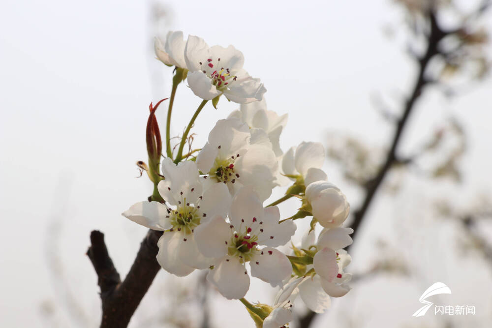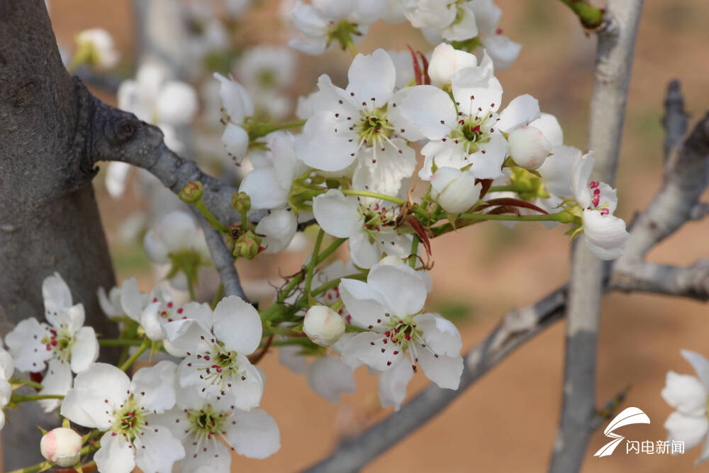 在春日阳光的映照下,一棵棵梨树绽放着别样的魅力,枝干上,洁白清灵的梨花一团团、一簇簇,或悠然吐蕊,或含苞待放,一色的清丽脱俗,一色的素洁淡雅。