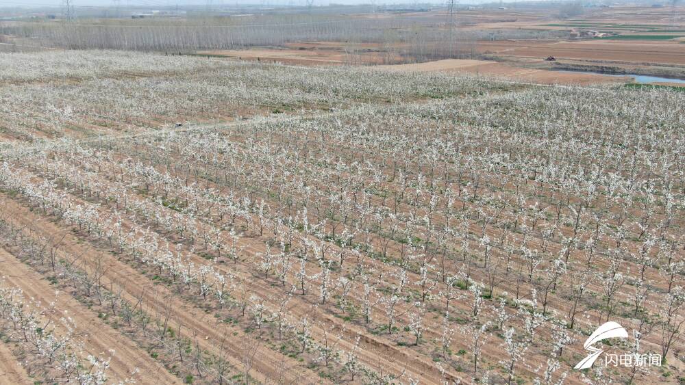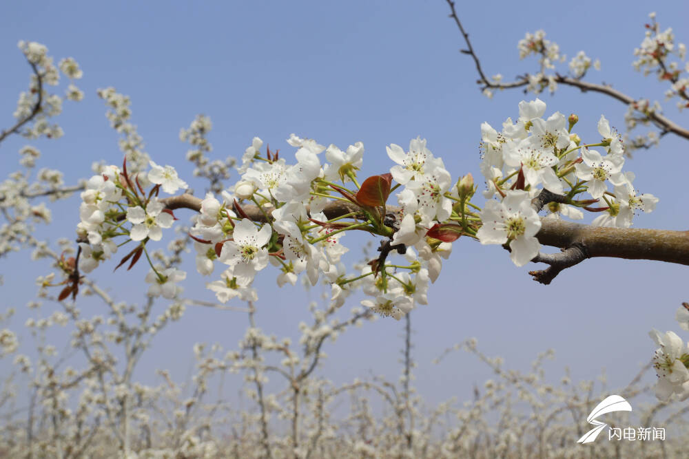 齐鲁网·闪电新闻4月8日讯 四月梨花白如雪,在日照莒县小店镇后严家崮西村400亩梨园迎来了盛花期,远远望去,漫山遍野的梨花犹如一片白色的花海。