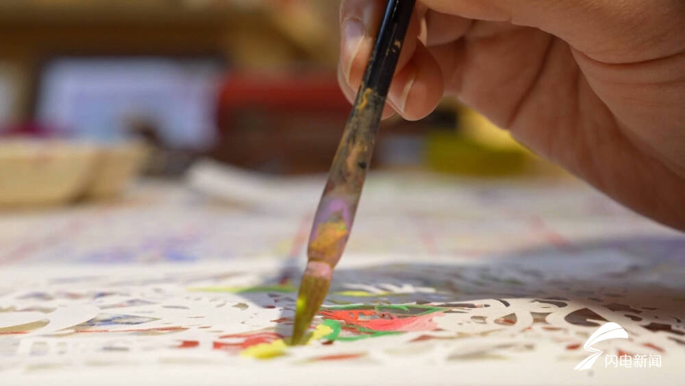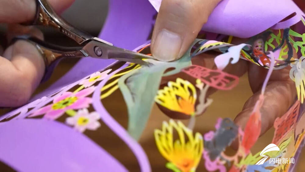 于红告诉闪电新闻记者,之前这门技艺是家族传承,她的父亲是省级代表传承人。因为每次放学回家,都能看到父亲在做剪纸作品和过门笺作品,于红从小耳濡目染,就慢慢学会了制作过门笺的技艺。