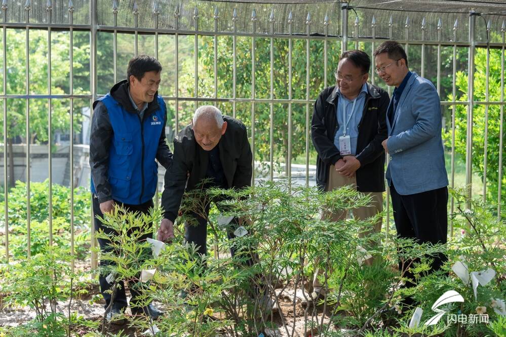 今年八十岁高龄的赵效知(上图左二)是一位闻名全国的牡丹培育专家,一辈子参与培育黑妞、赛墨莲、乌云集胜等500多个牡丹新品种的繁育。