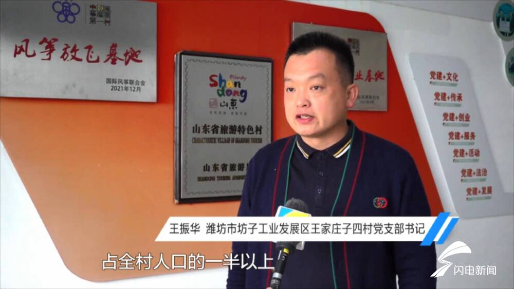 潍坊市坊子工业发展区王家庄子四村党支部书记王振华表示:“我们村有两千多人从事风筝产业,占全村人口的一半以上,辐射周边几十个村庄从事风筝产业,年产值能达到两个多亿。”