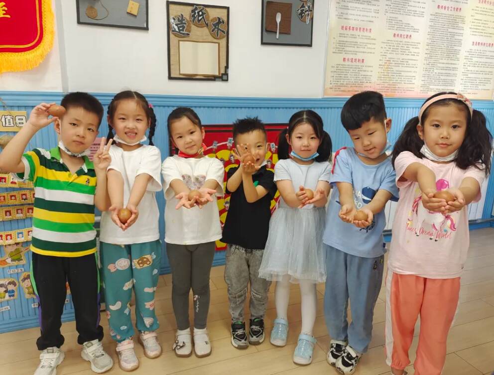 大三班的端午节染蛋蛋活动开始啊,孩子选择叶子在蛋壳上摆好造型,用纱布固定,水中再放入叶子进行浸煮,煮熟可将其送给好朋友,互祝一句“端午安康”。