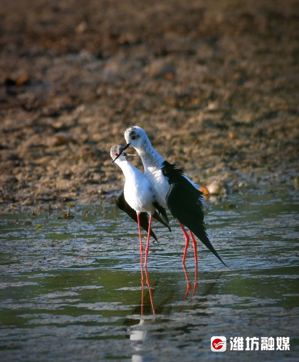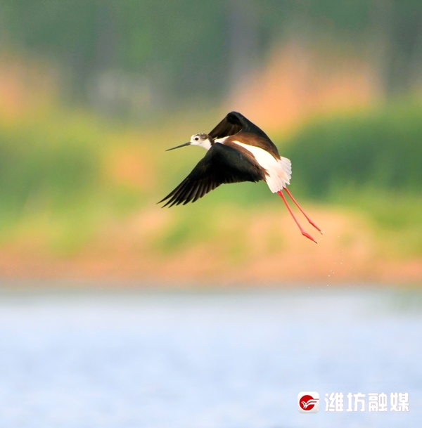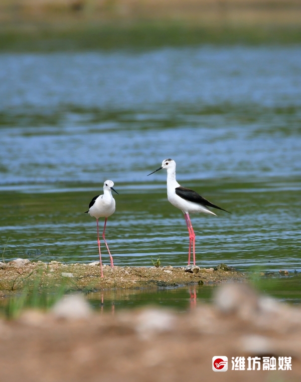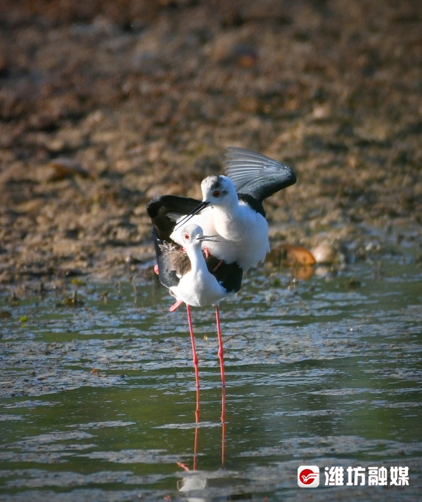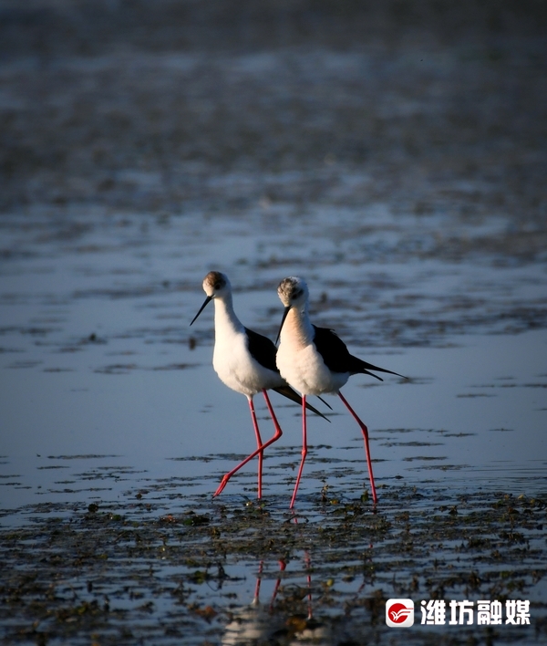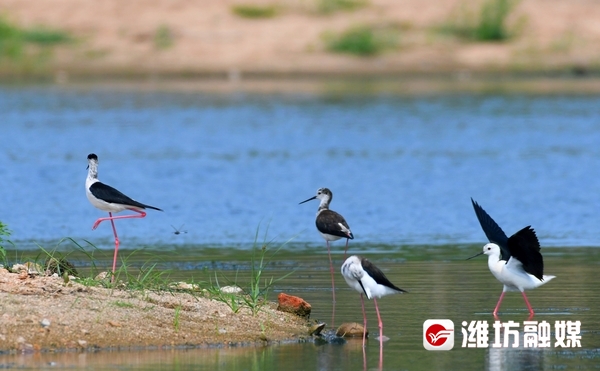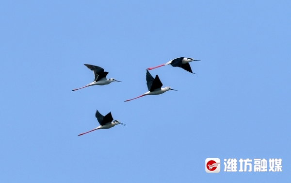 近日,潍坊市坊子区黄旗堡街道西安泰村西侧的汶河下游飞来了一群黑翅长脚鹬。这是一种体型修长、步态优美的黑白色涉水禽,其特征为细长的嘴是黑色,两翼黑,腿为红色,体羽白,颈背具有黑色斑块。