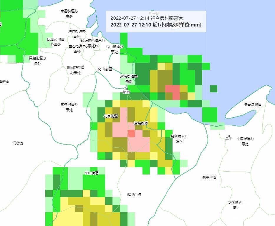 随后,杨成芳给记者截取了两张烟台7月27日中午的降雨雷达图,形象直观地反映了这种现象产生的过程。