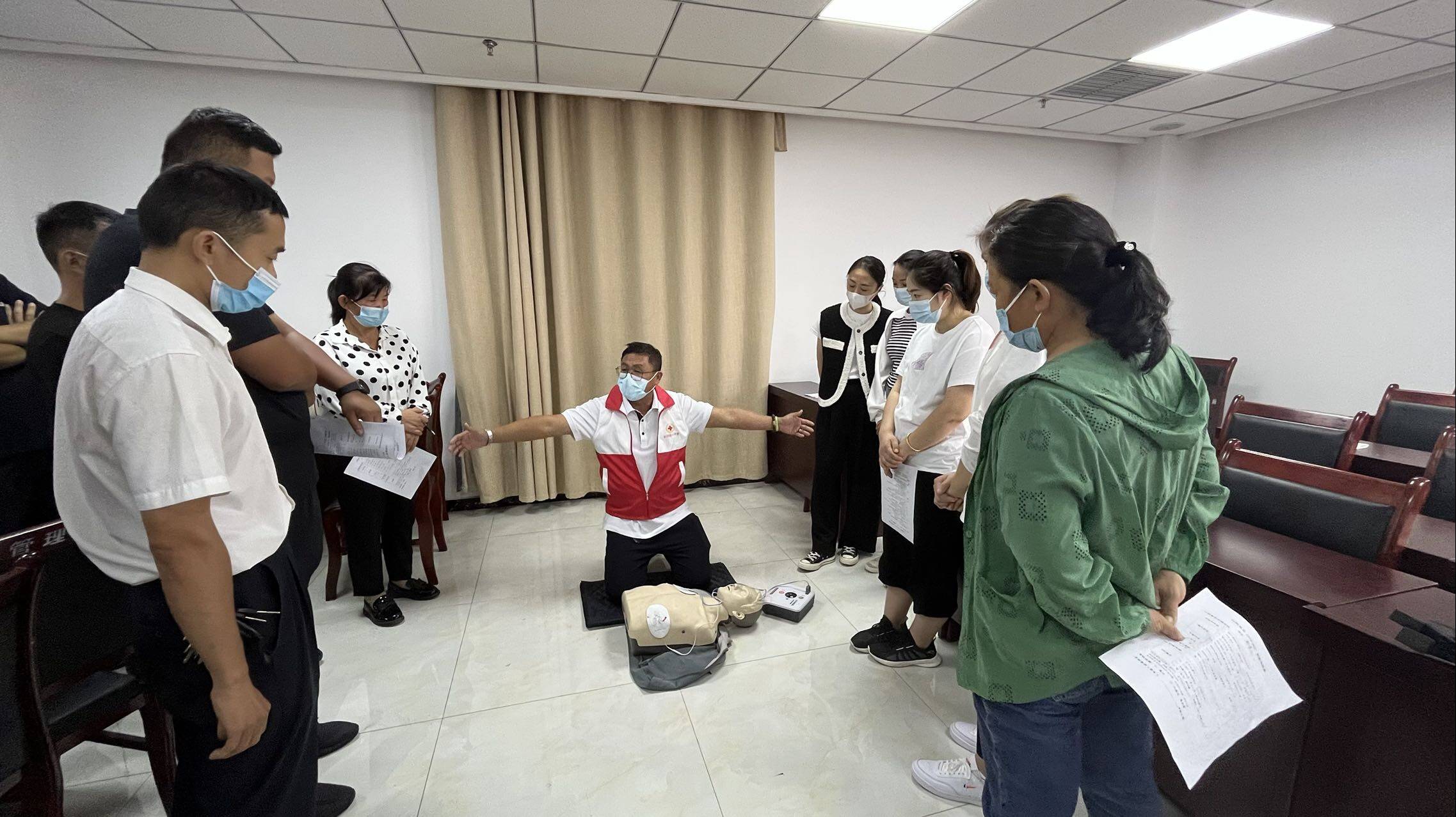 围绕“终身学急救,救护伴我行”主题,齐河县红十字会还举办为期四天的首批心肺复苏(CPR+AED)急救技能培训班,来自企事业单位、景点、学校、社区和车站等首批AED投放单位约260名工作人员参加培训。学员们专心听、认真学、用心练,掌握心肺复苏急救法和AED的正确使用方法。通过理论学习和实践操作考试合格后,取得培训证书,将进一步壮大应急救护队伍,筑牢公共场所意外伤害防护网。