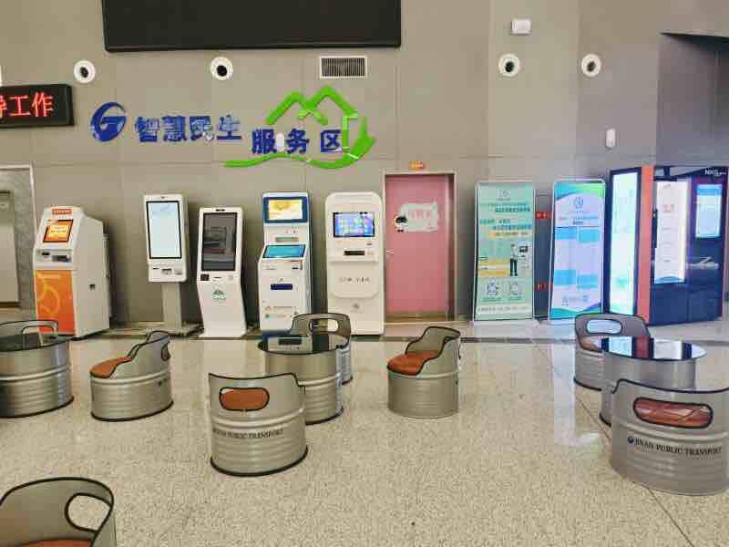 在智慧民生服务区投放各类智能自助服务终端。包括暖气、燃气、自来水、话费等自助缴费机,体现了智慧场站智能化服务的潮流感、时代感和便利感。未来还将开展志愿服务开放周,公交、燃气、水务等单位的志愿者将在场站内组织开展便民志愿服务活动。