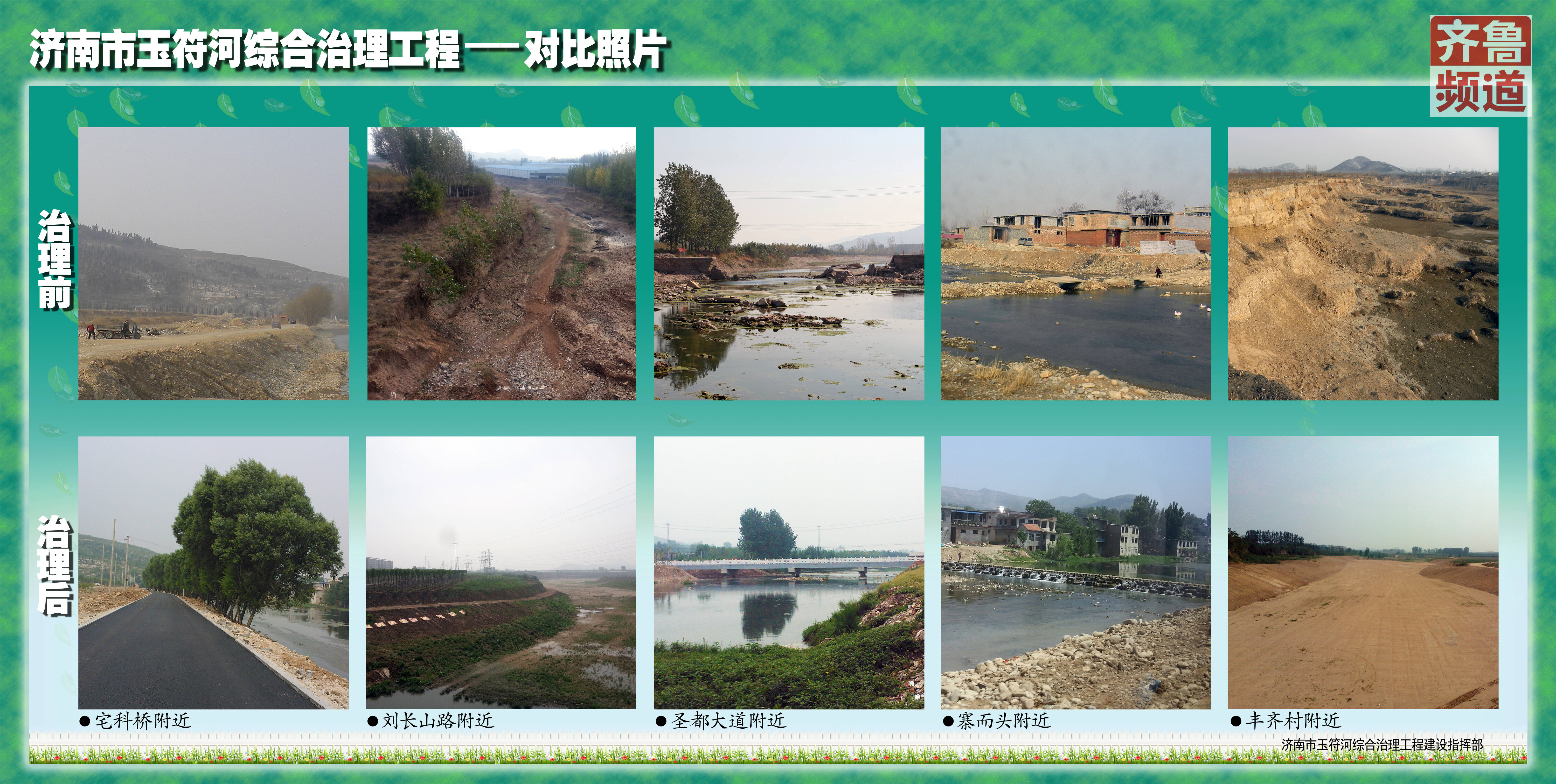 玉符河南起济南南部山区,历史上属于山洪自然冲刷形成的河道,《水经注》称其为“玉水”,但因为沿途村居生活污水和企业废水的排放,这里曾是另一番景象——乱搭乱建,污水直排,垃圾遍布。