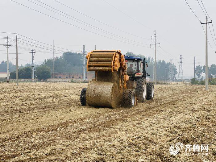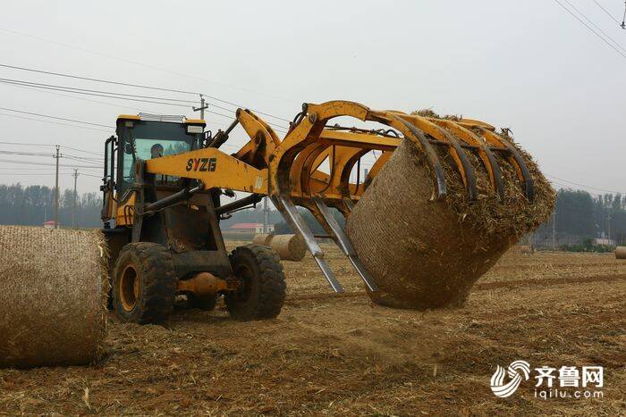 齐鲁网·闪电新闻10月21日讯 在济南平阴孝直镇营子村的高标准农田,秋收过后,这里每隔百米就有一个直径一米多的圆柱体。据悉,这些圆柱体就是打捆后的秸秆。目前,平阴县正积极推广小麦、玉米秸秆全程机械化打捆离田技术,创新秸秆综合利用模式,在收割完的田地里,利用秸秆搂草机将散落的秸秆搂成行,打捆机紧跟着收草打捆,全程作业一气呵成,让秸秆变废为宝。