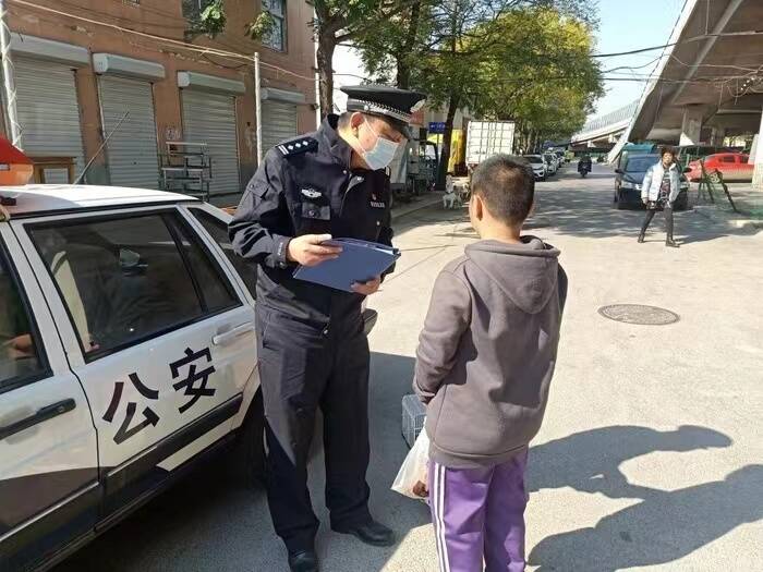 为了防止男孩发生意外,陆勇立即下车将孩子带到路边。由于孩子对陌生人有抵触,沟通起来并不顺畅,民警向周围群众询问,也无人知晓男孩的具体情况。为了保证孩子的安全,陆勇一边耐心安抚孩子的情绪,与其聊天,一边在微信工作群中发布信息找寻孩子的家人。