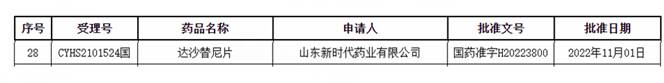 近日,鲁南制药集团尼达康®达沙替尼片(规格:50mg)经国家药品监督管理局批准上市,视同通过仿制药质量和疗效一致性评价,批准文号:国药准字H20223800。达沙替尼作为第2代口服广谱酪氨酸激酶抑制剂,通过抑制BCR-ABL、SRC家族、C-Kit和PDGF-B等多种酪氨酸激酶,用于治疗对甲磺酸伊马替尼耐药或不耐受的费城染色体阳性(Ph+)慢性髓细胞白血病(CML)慢性期、加速期和急变期(急粒变和急淋变)成年患者。尼达康®研发至今,荣获4项发明专利,其获准上市丰富了鲁南制药集团的癌症管线,为慢性髓细胞白血病患者带来更多的用药选择,也用实际行动践行了“鲁南制药 健康世界”的使命。