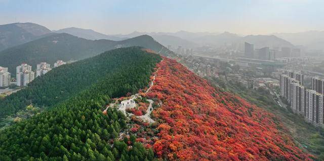 千佛山的小姐妹中有一座蚰蜒山,如同它的名字一样,像只“蚰蜒”小虫,乖乖地盘在济南城的南边,山顶一条小路,在最深秋的时候,弯出“平分秋色”的传奇:一面是黄栌,一面是松柏 ,一面是层林尽染的红,一面是浓淡相间绿, 温柔且不失昂扬。