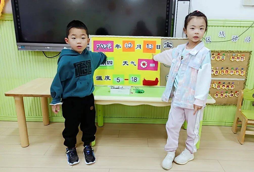 小小天气预报员给孩子们提供了一个展现自我的舞台,既培养了幼儿的口语表达能力,又丰富了幼儿的生活经验。更重要的是,孩子在老师和家长的引导下,学会了根据气候做好入园和外出的准备,雨天懂得带雨具,降温懂得添加衣物。愿我们的孩子们心中有爱,温暖常在,在自爱、自护、自信中感受四季的变化!