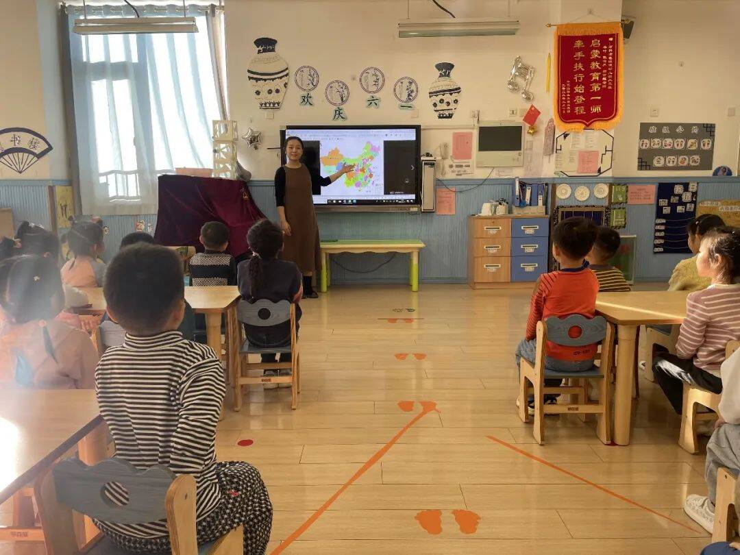 老师向孩子们介绍了中国地图,和孩子们一起找到了我们生活的地方,同时为孩子介绍了多种天气标志符号,通过游戏,带领孩子认识不同的天气。