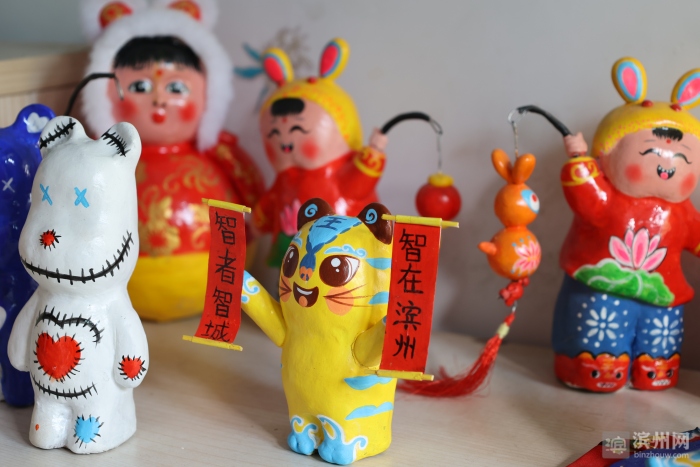 小虎滨滨、智者智城·志在滨州、“一腚蝇”、冰墩墩与雪容融、喜羊羊与灰太狼……在另一名泥塑艺人杜增香家中,记者看到了更“新潮”的泥塑。她的作品很时尚可爱、小巧灵动、惟妙惟肖,将最新的玩偶形象融入泥塑作品,“逢考必过”“旗开得胜”等蕴含美好寓意产品也来自她的精心创作,受到儿童、青年人等不同群体的喜爱。