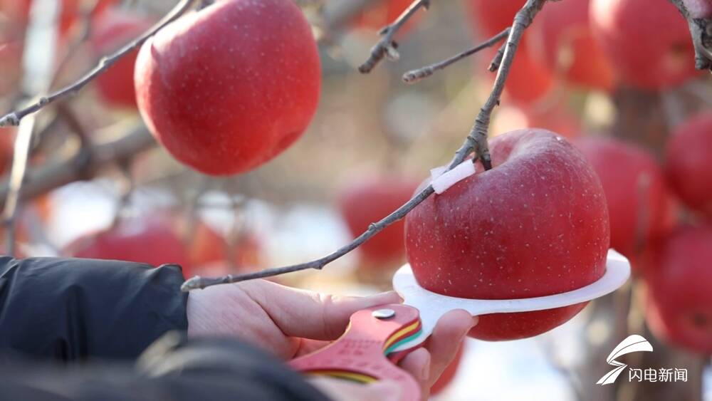 “我们这个果园大概有两百亩地,现在看到的这一片总共是五十亩,是我们的雪苹果基地,这个时间采摘,只剩下红彤彤的苹果,和雪景交织在一起,场面特别地漂亮,特别地壮观。”栖霞中惠阳光娃娃雪苹果种植基地负责人周靖凯告诉记者。