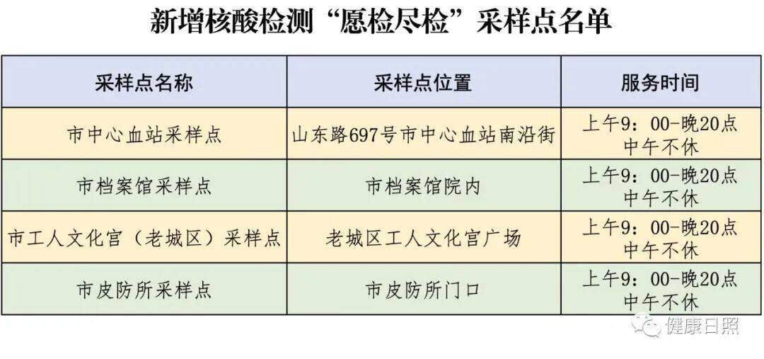 齐鲁网·闪电新闻12月12日讯 为方便群众核酸检测,在原有“愿检尽检”采样点的基础上,临时增设4处“愿检尽检”采样点,服务时间为9:00至20:00时,中午不休。广大市民可就近参加采样。其他核酸检测采样点可关注“健康日照”微信公众号,依据下图步骤快速进入核酸检测导航地图。