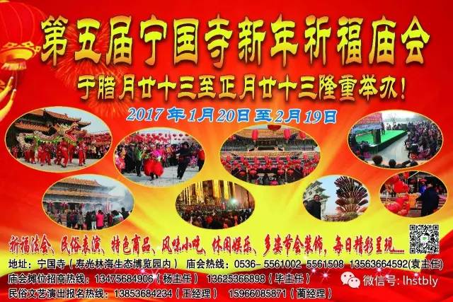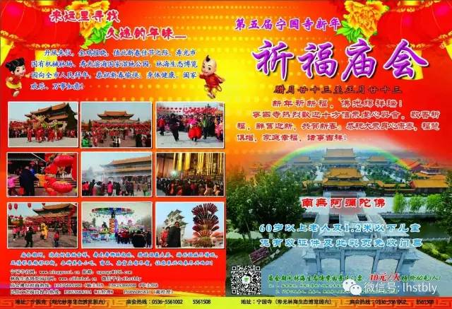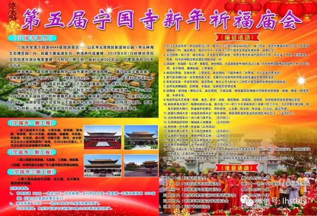 2.关注微信·赢大奖。庙会期间,凡在朋友圈内发表“我要去寿光林海宁国寺过大年·祈大福”字样,连续转发一周者,均可到寺院法物流通处领取奖品一份。