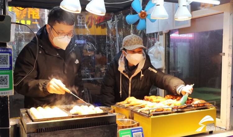 “来看一下章鱼小丸子、鸡翅包饭,刚出锅的章鱼小丸子……”在威海高新区欧乐坊零点夜市,商户张秀娟正热情推销自己的小吃,扑鼻的香味儿,诱人的色泽,吸引不少市民驻足购买。“这两天夜市的人比平时或者年前多很多,生意也好多了,营业额比年前当然也多一些。新的一年,我也希望我的营业额越来越高。”