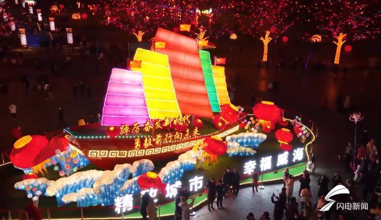 齐鲁网·闪电新闻2月3日讯 临近元宵节,威海各大公园、广场上的花灯炫彩夺目,吸引不少市民赏景打卡,一派热闹景象。霓虹闪烁中,也激发了城市消费的新活力。
