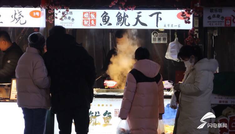 “来看一下章鱼小丸子、鸡翅包饭,刚出锅的章鱼小丸子……”在威海高新区欧乐坊零点夜市,商户张秀娟正热情推销自己的小吃,扑鼻的香味儿,诱人的色泽,吸引不少市民驻足购买。“这两天夜市的人比平时或者年前多很多,生意也好多了,营业额比年前当然也多一些。新的一年,我也希望我的营业额越来越高。”