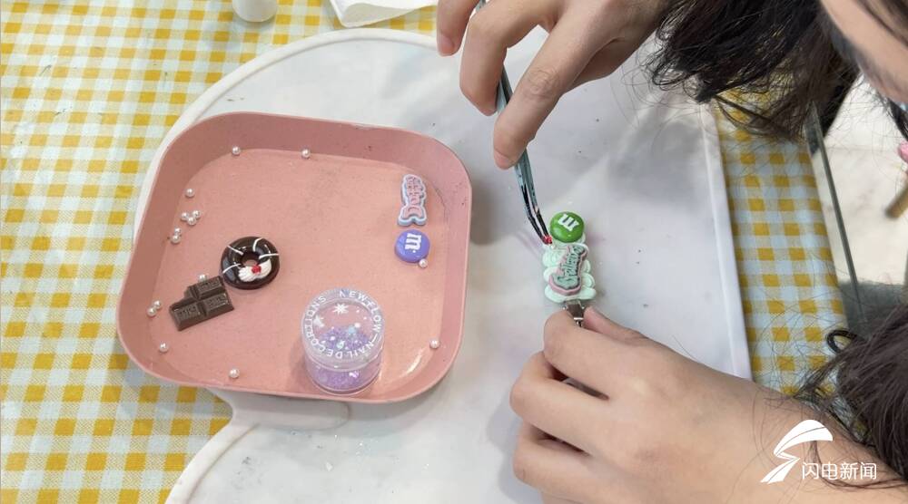 “做一个手机壳上午花了两个小时,下午就熟练多了,做了3个卡子只用了几分钟。我感觉很有意义,是一个不错的体验。”一位顾客对闪电新闻记者说。