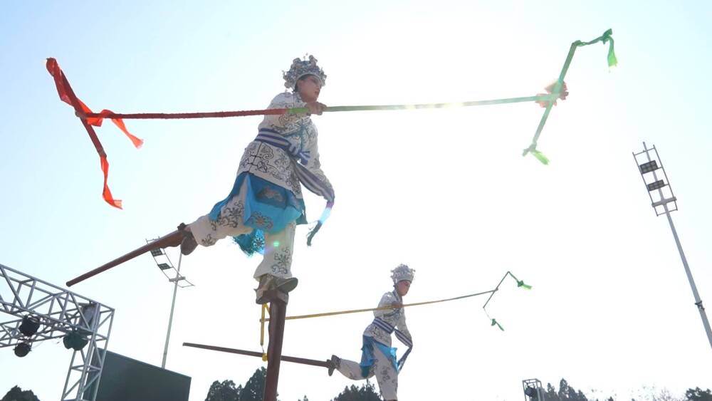 齐鲁网·闪电新闻2月4日讯 翻跟头儿,逗趣儿,摆造型......在济南虞山文体公园,伴着鼓点,高跷队员轮番上演绝活儿动作,引发现场观众阵阵欢呼喝彩。