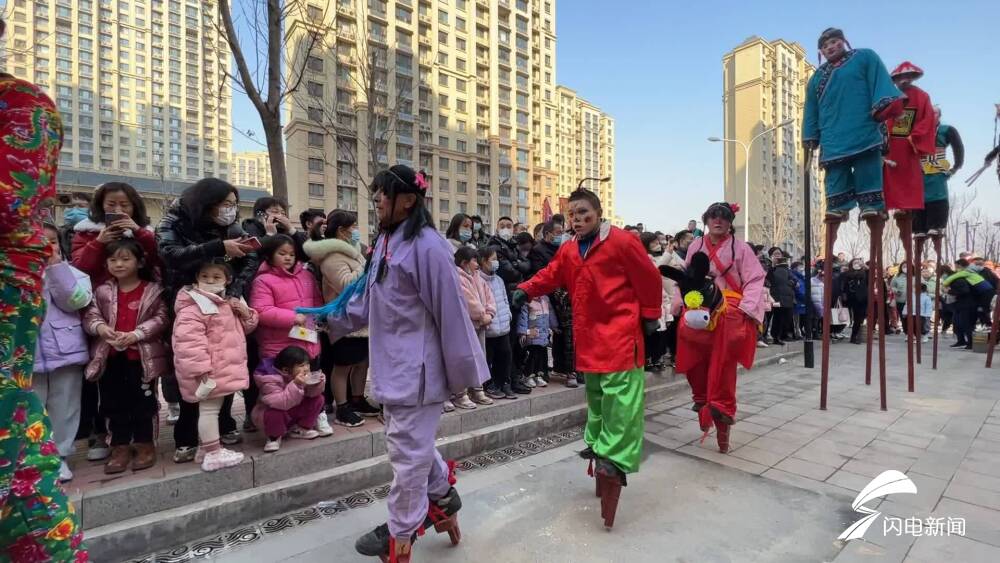临近元宵节,济南小超高跷队迎来今年高跷表演的最后一个高峰期。